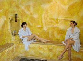 Un ambiente ricco di vapore acqueo che si genera dall'acqua termale, l'umidità si deposita sulla pelle favorendo la traspirazione
